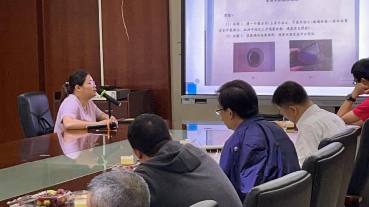 宋亮老師首先介紹了課程思政提出的背景以及內涵。“課程思政”是以“課程”為“思政”的育人載體,構建全體成員、全程且全課程的育人格局,將課程和思想政治理論課程有機地融合在一起,形成協同效應。宋老師結合現高二所學的“圓錐曲線方程”具體闡述了思政元素如何從愛國教育、政治信念教育、“三觀”教育、思想方式教育、思維方式教育和個性品質教育六個方面融入課程;其次,從數學史、課本活動以及試題背景三個角度說明老師應如何去挖掘數學課程中的思政素材;最后,宋老師指出,課程思政的落腳點是在課堂中充分挖掘學科知識,借助知識載體厚植家國情懷、提升道德修養、提高法治意識、積淀文化素養。課程思政作為隱性思政教育,目的是通過課堂育人這個主渠道,實現知識傳授與價值引領的有機統一,以達到“潤物細無聲”的教學效果。