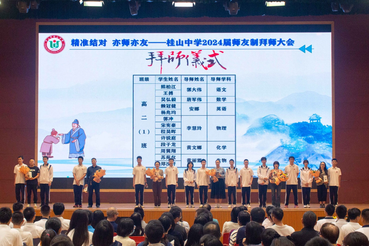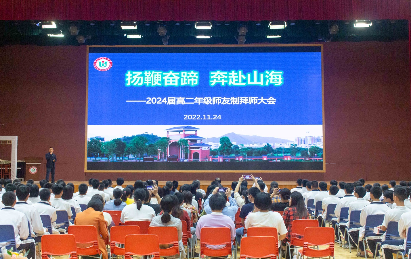 2022年11月24日,恰逢感恩節,桂山中學高二年級在陳戈平體育館舉行了“師友制”拜師大會。師生滿懷感恩的心,感謝有你,結伴同行,這是桂山中學首屆“師友制”拜師大會,董再明校長、嚴小堅副校長等學校行政出席了大會。