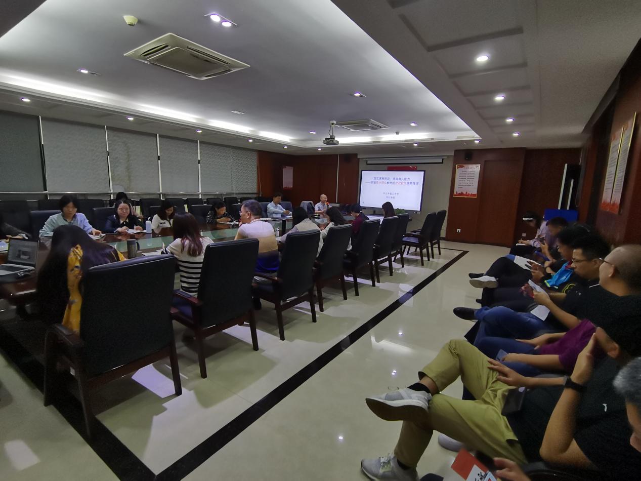 為落實課程思政,提高育人能力,在桂山中學語文科組召集人曹永明老師的主持下,桂山中學語文科組于2022年11月24日在育賢樓六樓大會議室舉辦了語文思政教研活動。本次教研活動由劉付海俊老師主講,學校全體語文老師出席參加。