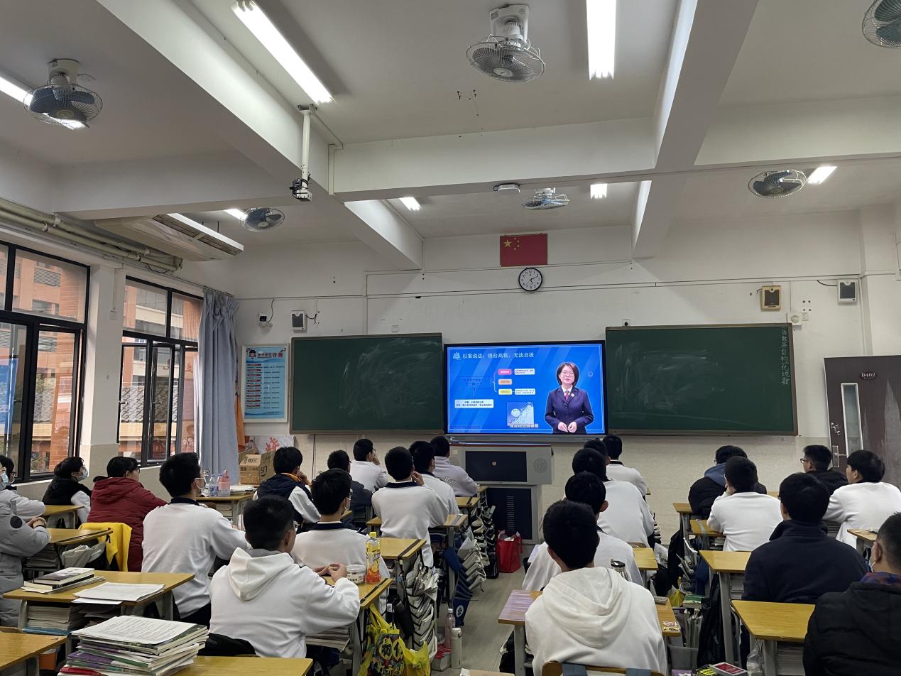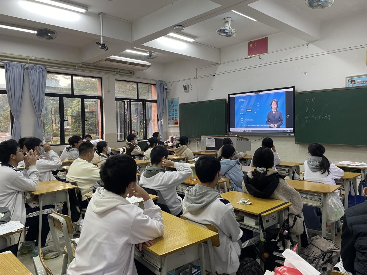 為了保護學生免遭有組織犯罪的侵害,2023年1月4日,桂山中學面向全體學生開展了“法治進校園”主題學習。學習以視頻直播的形式,由中山市第一市區人民檢察院檢察官包敏嫦主講。