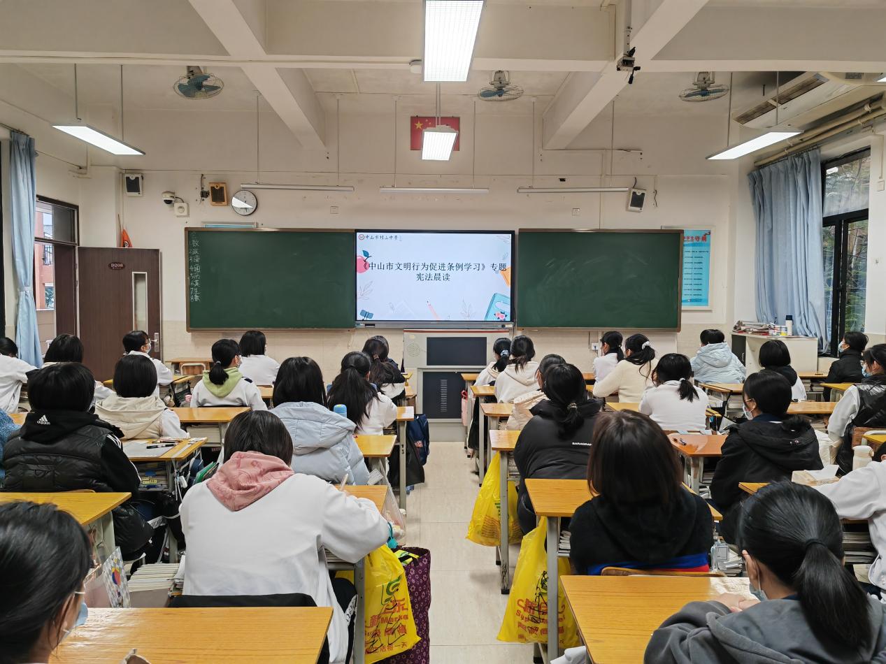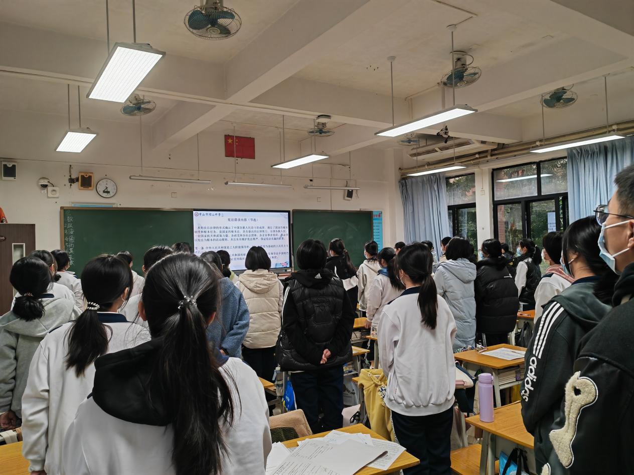 為增強憲法意識、弘揚憲法精神、加強憲法實施、全面推進依法治國,12月12日,中山市桂山中學利用早會開展了“國家憲法日”學生專題教育活動。