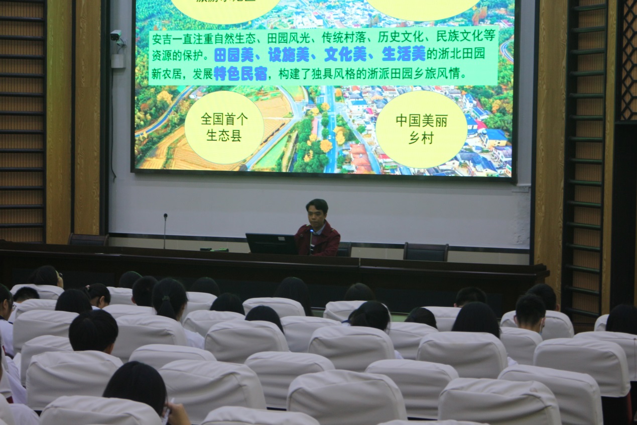 程老師讓同學(xué)們深刻明白保護(hù)環(huán)境的重要性,將這個(gè)觀念落實(shí)到日常生活行動(dòng)之中。他表示,曾經(jīng)污染嚴(yán)重的礦山村,走到舉步維艱的轉(zhuǎn)型路口時(shí),因?yàn)椤熬G水青山就是金山銀山”這一句話走上綠色發(fā)展之路。還有2021年12月2日,在西班牙馬德里舉辦的聯(lián)合國(guó)世界旅游組織第24屆全體大會(huì)上,安吉余村從75個(gè)國(guó)家的170個(gè)申請(qǐng)的鄉(xiāng)村中脫穎而出,成功入選首屆聯(lián)合國(guó)世界旅游組織最佳旅游鄉(xiāng)村等多個(gè)例子,說(shuō)明了在當(dāng)今這個(gè)時(shí)代,全球范圍內(nèi)都在號(hào)召可持續(xù)發(fā)展,把堅(jiān)持可持續(xù)發(fā)展作為時(shí)代發(fā)展的潮流。
