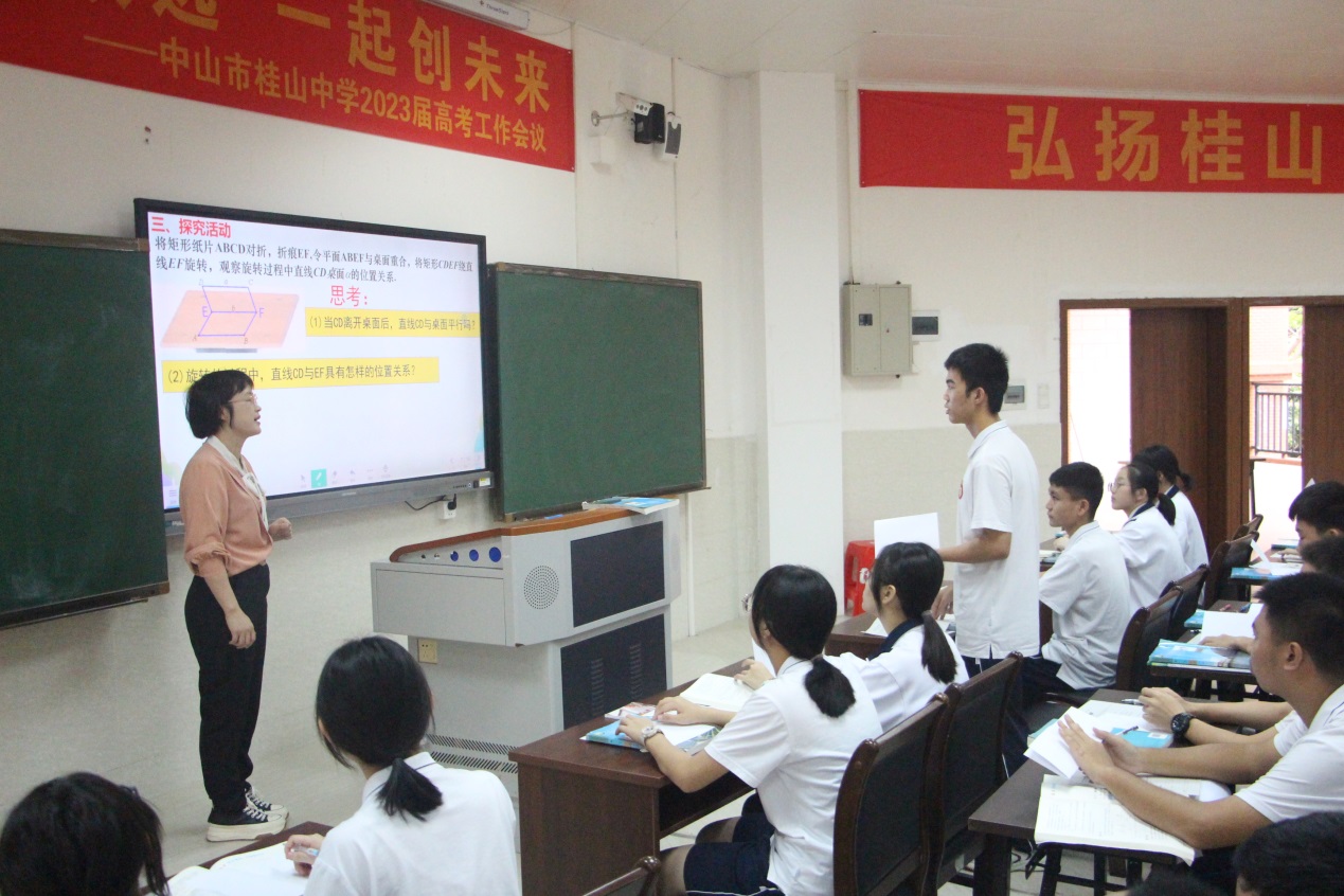 本次活動由桂山中學、龍山中學的中山市名師、學科帶頭人、骨干教師以及教學競賽獲獎教師聚焦同一內(nèi)容,展現(xiàn)不同風采,提升教師專業(yè)發(fā)展,打造高質(zhì)量課堂。市骨干教師劉丹峰、龍山中學備課組長劉麗萍同上數(shù)學課《直線與平面平行》,市教學競賽一等獎教師安娜與市學科帶頭人袁丹純同上英語課《必修三Unit3 Welcome to Chinatown》,市骨干教師宋展添與市教學競賽一等獎教師陳習羽同上物理課《互感與自感》,市教學競賽一等獎教師鄭露萍與市骨干教師黃志剛同上政治課《邏輯思維的基本要求》,市骨干教師趙雙與市骨干教師馮樹濤同上地理課《人類面臨的主要環(huán)境問題》,各位優(yōu)秀教師精心準備、精心設計,針對教學重點,著眼于教學難點,呈現(xiàn)除了一堂堂不同風格的精品課。
