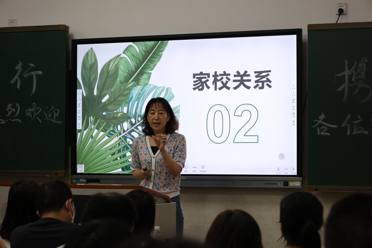 接下來,殷趙飛主任通過分享年級的育人愿景、學校的育人成果、年級的管理策略、學生的學習表現等方面,提醒家長既要對孩子充滿信心,同時也要做好與孩子共同面對挑戰的準備。他對家長們建議:“面對準高三的學生,家長要與老師保持一致,形成強大的合力助推孩子成長。家長還要保持學習,進行正面管教,關注孩子的心理狀態,引導孩子進行生涯規劃,家長好好學學,孩子天天向上?!彪S后,鄧秀平主任通過對《中華人民共和國家庭教育促進法》的解讀,為家長們明確了家庭教育的概念、家長在家庭教育中的主體責任以及家庭教育的主要內容,她希望家長能與學校同頻,與自己的孩子同頻,為孩子們奔赴山海蓄力。