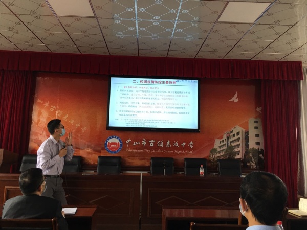 此次培訓由市古鎮高中健康副校長陳夏威講解新冠肺炎診療和防控知識。陳副校長深入淺出地講解了新冠肺炎的流行病學、臨床表現、診斷標準等知識,同時講授了一些防控新冠肺炎的實用方法,與會成員聽后受益匪淺。市古鎮高中吳明紅校長帶領與會成員學習突發新冠肺炎疫情應急處置預案,并解讀了有關內容。