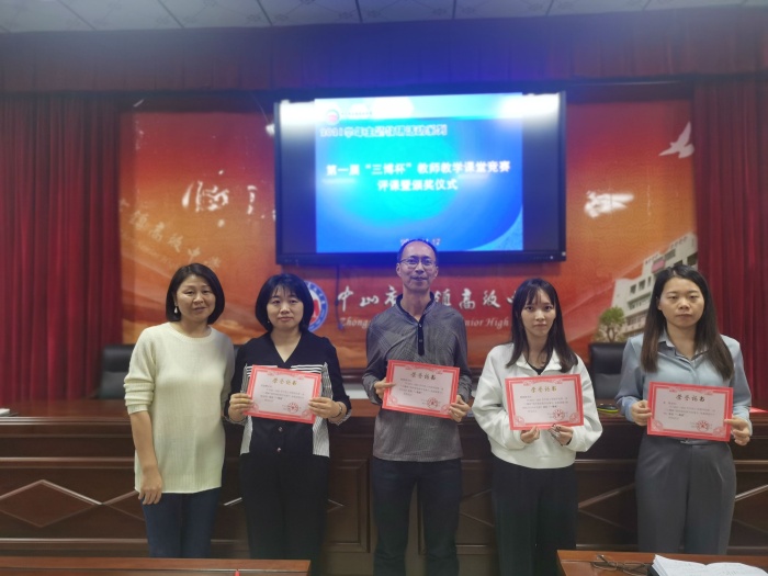 16位參賽教師以最飽滿的熱情投入到本次活動,給大家呈現了各具特色、各美其美的高效課堂展示。現場賽課環節結束后,教學處組織了評課活動暨頒獎儀式,學科評委立足“構建深度學習課堂,發展學科核心素養”展開了專業點評。最后由教學處曾令雨主任為區汝徑老師等5名特等獎、5名一等獎、6名二等獎獲得者進行了頒獎。