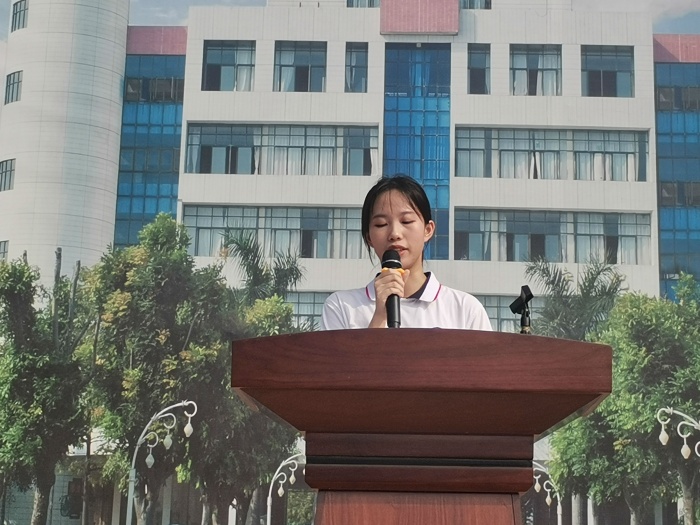 韋鍵賢同學的發言主題是《傳承文明,從我做起》。她從儀容儀表、愛護校園環境、不違規使用手機和充電寶、文明上網、積極參與志愿者活動等身邊事切入,號召同學們規范自身言行,養成文明習慣,正當文明使者,讓文明之花開滿古高校園。