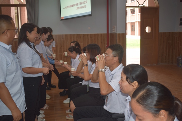 儀式由教務(wù)處主任廖金梅主持。儀式第一項(xiàng),由石振榮副校長(zhǎng)宣布師徒結(jié)對(duì)名單。學(xué)校按照分學(xué)科分年級(jí)的原則,為31位教師安排了師徒結(jié)對(duì),這樣更有利于在平時(shí)的教學(xué)中師傅幫帶徒弟和互幫互助。