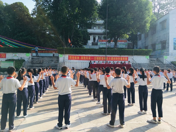 古鎮新徽學校根據大課間特色,結合學校實際,開展自創的校園《大夢想家》特色操,并在全校范圍內推廣練習。利用體育課、大課間活動等時間,廣泛開展訓練。特色操內容采用了《大夢想家》音樂,將運動活力與音樂舞蹈結合起來,使學生在學習特色操的同時,也能得到靈活的體育鍛煉,更好展現學校的藝術特色,在每天的大課間活動中,深受師生的喜愛,也更好展現了學校的大課間特色。經過兩個多小時的比賽,各班都展示了出色的做操水平,學生們出色的表現,為大課間陽光體育增添了風采。