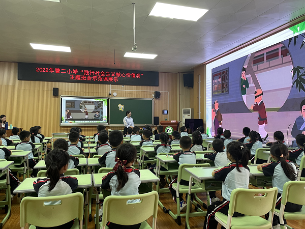 為了深入研究和探索班會課的模式,加強班主任隊伍專業建設,5月26日下午,曹二小學全體班主任集中學校報告廳,觀摩學習曹二小學“踐行社會主義核心價值觀”主題班會示范課。