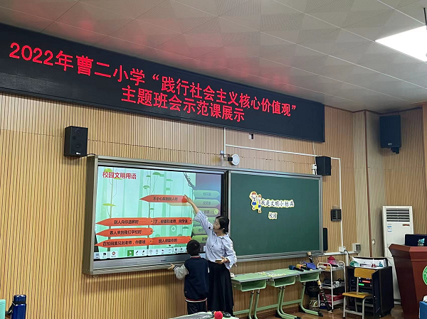 此次主題班會示范課的開展,既為班主任提供了展示風采的平臺,又為全校班主任提供了互觀互學,交流研討的機會,對班主任專業水平的提高起到了積極的示范作用,必將進一步推動曹二小學德育工作的開展。