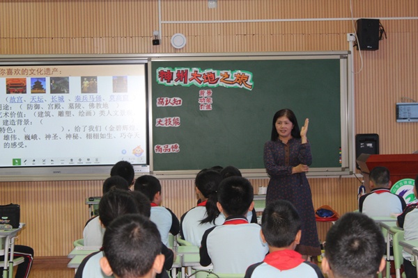 曹二小學(xué)美術(shù)科組長(zhǎng)黎夢(mèng)春先向在座的各位展示了《神州大地之旅》的課例,黎老師以自身精彩的旅游經(jīng)驗(yàn)吸引了學(xué)生的眼球。在教學(xué)中黎老師運(yùn)用了平板給學(xué)生展示了豐富多彩的神州大地名勝古跡,通過希沃平臺(tái)的課堂互動(dòng)游戲幫助學(xué)生解決重難點(diǎn),充分發(fā)揮信息技術(shù)硬件及軟件的功能,讓學(xué)生“在學(xué)中玩,在玩中學(xué)”,提高教學(xué)效能。