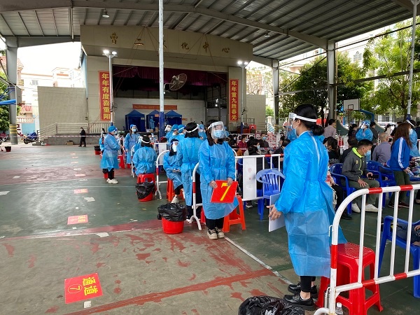當(dāng)前新冠病毒變異毒株傳染性、隱匿性強(qiáng),極易多點(diǎn)散發(fā)或集中暴發(fā),為有效阻斷疫情傳播風(fēng)險(xiǎn),保障人民群眾身體健康和生命安全,進(jìn)一步鞏固提升來(lái)之不易的疫情防控成果,接到上級(jí)通知,4月1日,古鎮(zhèn)鎮(zhèn)曹二村決定在曹二小學(xué)體育場(chǎng)開(kāi)展新一輪全員核酸檢測(cè)。曹二小學(xué)黨支部全體黨員以及部分教師參與了本次核酸檢測(cè)工作。