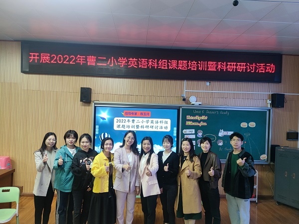 本次活動邀請到中山市實驗小學英語科組長陳玉河老師參加,曹二小學麥彩英副校長以及曹二小學、曹一小學全體英語老師參與了本次教研活動,上榮小學的老師則通過線上直播的形式參與。
