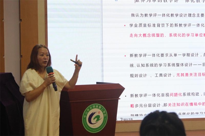 廣州市荔灣區教育局陳俊芳教授給參會人員帶來了《探尋“雙減時代”教學教研管理的實施路徑》專題講座,針對“雙減”后學校面臨的新挑戰,她提出要在多元評價、教學創新以及高效家校共育等方面有所突破,生動地分享了探尋“雙減時代”教學教研管理的兩條實施路徑:一是校本教研;二是教學管理。