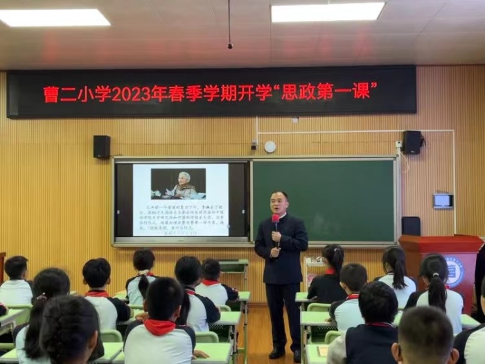 思政引領,鑄魂育人。2月9日下午,曹二小學黨支部書記、校長邱波為曹二小學全體思政老師、六年級學生帶來了以“我追尋星辰大海的底氣,是你給的”為主題的思政宣講第一課。希望曹二學子在新的一年里,在黨的陽光照耀下,在學校老師和家長共同關懷和培養下,找準目標,培養良好習慣與品格,一步一步走向更美好的未來。