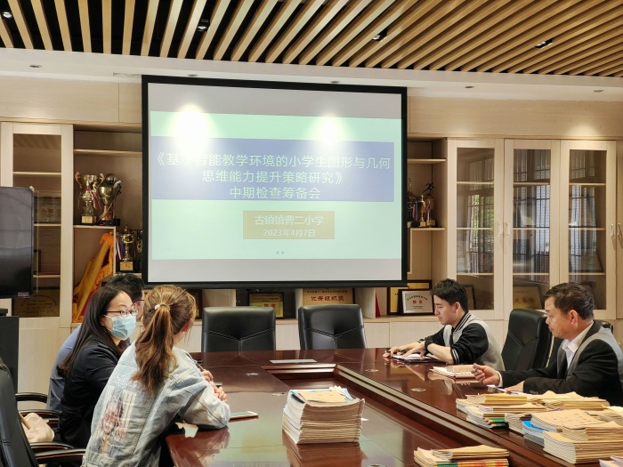 為順利推進曹二小學的省級立項課題《基于智能教學環境的小學生圖形與幾何思維能力提升策略研究》中期檢查工作,及時了解并解決課題研究過程中的瓶頸問題,4月7日下午,廣東省課題《基于智能教學環境的小學生圖形與幾何思維能力提升策略研究》課題組在曹二小學會議室召開課題中期檢查籌備會。本次會議由課題主持人陳江老師主持,全體課題組成員參加了本次會議。