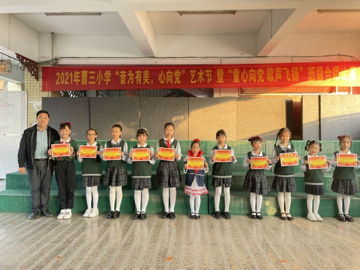 為豐富學(xué)生的校園生活,彰顯學(xué)生積極向上的精神風(fēng)貌,12月17日下午,古鎮(zhèn)鎮(zhèn)曹三小學(xué)舉行以“童心向黨 歌聲飛揚(yáng)”為主題的班級合唱比賽。全校23個班,一千余名同學(xué)參加了本次合唱比賽。