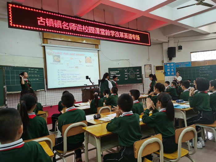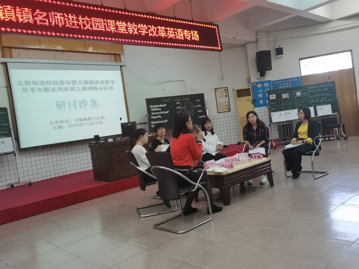2020年11月16日早上8點(diǎn),古鎮(zhèn)鎮(zhèn)曹三小學(xué)英語科組開展“名教師進(jìn)校園暨古鎮(zhèn)鎮(zhèn)課堂教學(xué)改革”專題教研活動,古鎮(zhèn)鎮(zhèn)全體小學(xué)英語老師觀摩。這次活動分為三個議程,首先由黃文娣老師和黃金喬老師就如何落實(shí)小組合作學(xué)習(xí)上展示課,資深黃文娣老師執(zhí)教六年級Unit5 <A Circus in the Park>詞匯課,而年輕教師黃金喬老師執(zhí)教五年級Unit5 <School lunch>詞匯課。接著許市中學(xué)劉海霞和古鎮(zhèn)莫曉巧,蔡淑嫻老師進(jìn)行評課,最后由鎮(zhèn)教育事務(wù)指導(dǎo)中心陳和添主任做專題培訓(xùn)指導(dǎo)。