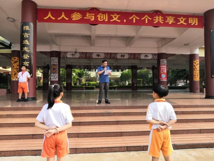 同學們整整齊齊排隊到操場,進行了莊嚴的升旗儀式,全校師生滿懷信心、精神抖擻,共同期待新學期的美好征程。升旗儀式后,蔡汝浩校長對學校新一屆領導班子進行了介紹。