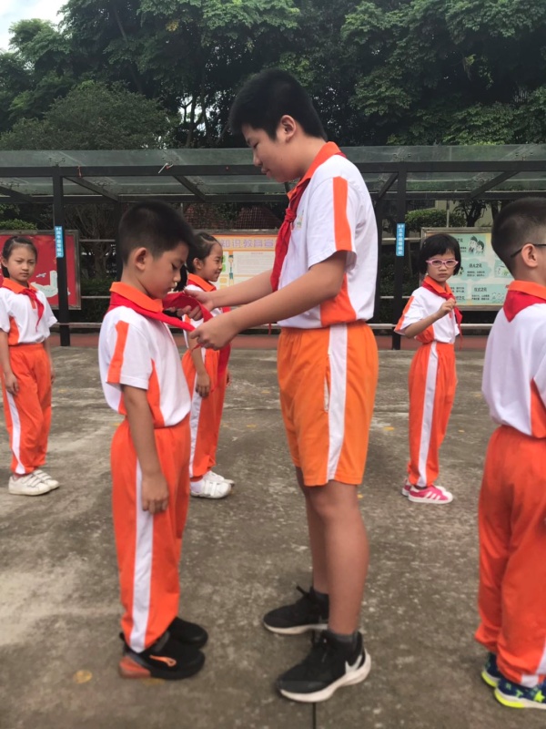 接著,新隊(duì)員代表表達(dá)了入隊(duì)后的喜悅心情,也表示以后要用實(shí)際行動為紅領(lǐng)巾添光彩,爭做一名優(yōu)秀的少先隊(duì)員和合格的共產(chǎn)主義接班人。老隊(duì)員代表發(fā)言,表達(dá)了老隊(duì)員對新隊(duì)員的期望,愿新隊(duì)員們深知紅領(lǐng)巾代表國旗一角的神圣;愿新隊(duì)員們漸漸誕生出建設(shè)祖國的高昂理想;愿新隊(duì)員們生出心中的熱愛,堅(jiān)定信念,實(shí)現(xiàn)人生理想!