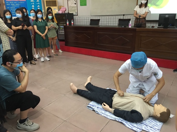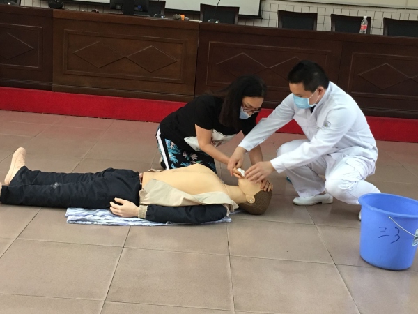 古鎮人民醫院急診科醫生為教師們講解了心肺復蘇的理論和操作知識,教師們觀看了急救演示視頻,古鎮人民醫院醫生同時運用心肺復蘇模擬人進行現場操作解說與演示,讓大家明白急救的每一個步驟都極其重要,教師們認真聆聽、細心觀看,還踴躍參與現場演練。據統計,我國每年約有54萬人因心臟驟停而死亡,黃金搶救時間是4分鐘之內,為此每個人學會徒手心肺復蘇是至關重要的。舉辦這場急救技能培訓是為了盡可能全面向大眾普及心肺復蘇急救知識,從而最大程度挽救生命,緩解病痛和減少傷殘,提高人們健康水平。