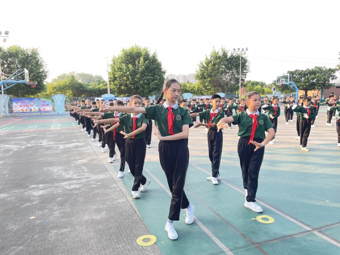運(yùn)動(dòng)在日常,廣播操是學(xué)生每天鍛煉身體的重要載體。每天以飽滿的精神、規(guī)范的動(dòng)作做好廣播操,不僅能強(qiáng)健學(xué)生的體魄,傳承粵文化,更能磨煉學(xué)生的意志力。隨著音樂(lè)響起,比賽正式拉開了帷幕,朝氣與活力在每個(gè)同學(xué)的身上洋溢,意氣風(fēng)發(fā)的少年齊步走來(lái),每一個(gè)動(dòng)作都鏗鏘有力,口號(hào)響亮,動(dòng)作整齊劃一,展現(xiàn)出新時(shí)代曹三學(xué)子昂揚(yáng)進(jìn)取的姿態(tài)和強(qiáng)烈的集體榮譽(yù)感。粵韻悠悠,育人育美!粵韻操以點(diǎn)帶面,把粵劇的種子播撒到校園,得到更廣泛的傳承,激發(fā)學(xué)生民族自信和民族自豪感,展現(xiàn)了粵劇戲曲的音樂(lè)之美、動(dòng)作之美,讓文化傳承的火種在學(xué)生們的心中扎根、發(fā)芽、生長(zhǎng)!鮮衣怒馬少年時(shí),且操且舞且從容。曹三小學(xué)的學(xué)子們舞動(dòng)青春,放飛夢(mèng)想,愿他們都能成長(zhǎng)為自己喜歡的模樣。與愛同行,未來(lái)可期 !