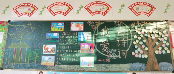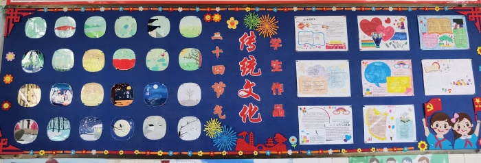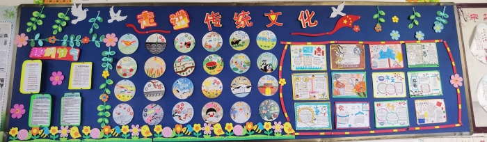 活動期間,參賽班級緊緊圍繞著“走進中華優秀傳統文化”的活動主題,班主任組織學生們根據中華傳統文化中經典元素自主設計、制作教室板報,有的以京劇為主題,有的以愛國故事為背景,有的以二十四節氣為主題,既有愛國主義成語詩詞,也有典故及時代新解,學生享受并體會傳統文化魅力給予的熏陶、感染和教育,感受民族自豪感與家國情懷,以此更好的促進了班級文化建設,讓中華傳統文化在班級中生根發芽。