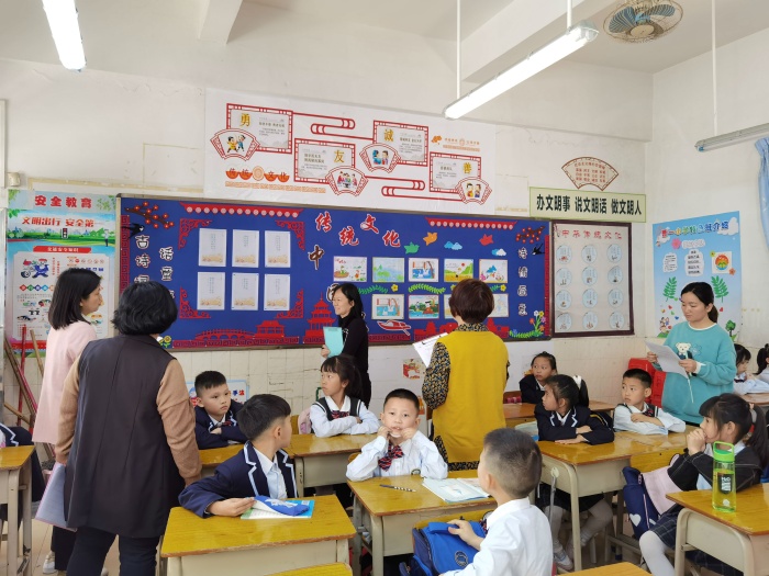 由學校行政班子、年級組長、部分資深老師組成的檢查小組對各班級的班級文化建設進行檢查評比。檢查小組從黑板報設計、班級傳統文化氛圍營造等方面進行量化評分。