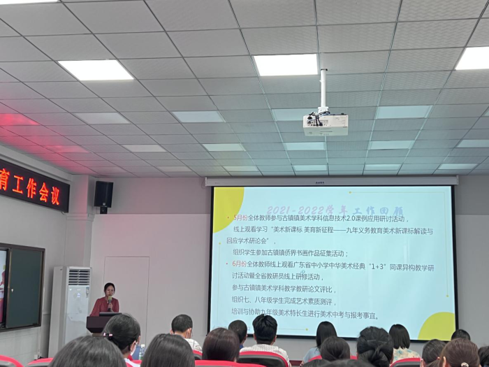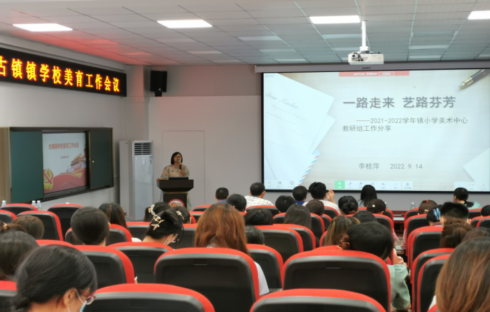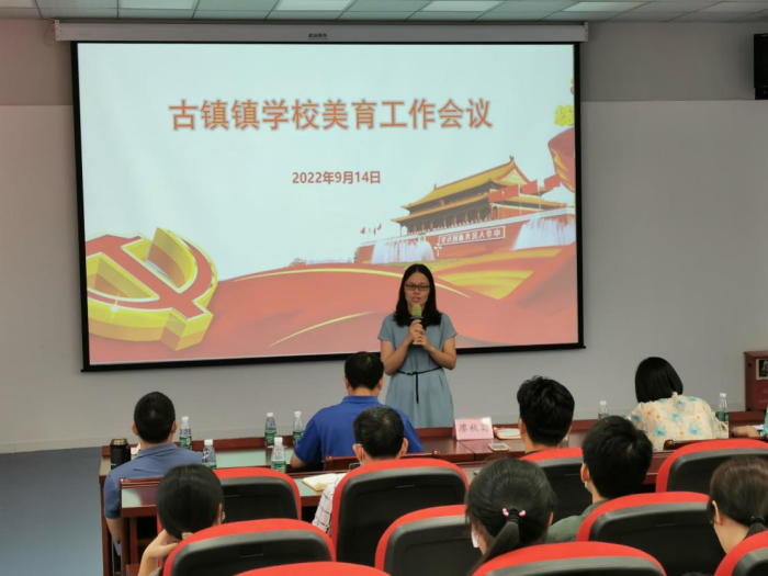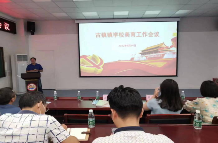 為進一步提升古鎮鎮中小學美育教育教學實效,部署2022年秋季學校美育工作,推進區域美育發展,發揮課堂美育效果,2022年9月14日上午,古鎮鎮美育工作會議在海洲第一小學報告廳順利開展。會議由鎮教體中心藝術專干孔國范老師主持,鎮教體中心廖秋菊老師、全鎮美育專職教師及各校書法科組長參加了此次活動。