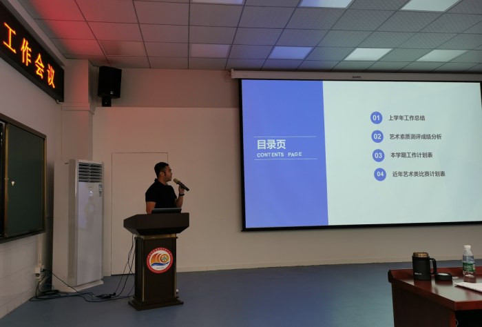 接著,是鎮中小學音樂、美術、書法中心教研組長圍繞“重點工作回顧”、“藝術測評”“新學期工作”等內容分別上臺進行了匯報交流。他們思路清晰、理念先進,每個人都能根據本學科特點組織開展豐富多彩的教研活動以促進教師的成長,每個教研組也都亮點紛呈、成效顯著,在各級各類活動中教師、學生都獲得了長足的進步,獲獎頗豐。