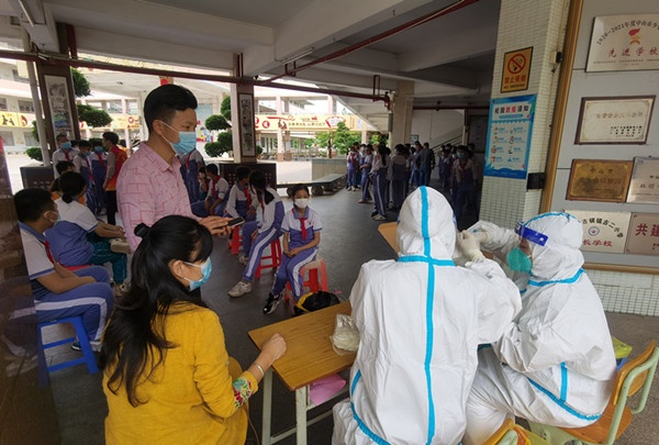 疫情就是命令,防控就是責(zé)任。根據(jù)古鎮(zhèn)鎮(zhèn)疫情防控中心的工作部署,為進(jìn)一步加強(qiáng)校園疫情防控的工作,保障師生的生命安全,確保學(xué)校的教育教學(xué)工作順利開展,3月18日下午,在鎮(zhèn)教體中心林梗卿主任的指導(dǎo)下,古二小學(xué)安全有序地開展全校師生的核酸檢測(cè)工作。
