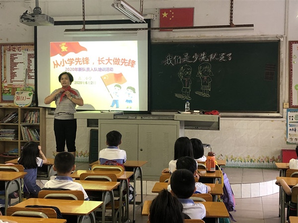 在整齊嘹亮的隊歌后,儀式正式拉開了序幕。當六年級的老隊員為新隊員帶上紅領巾的那一刻,當新隊員舉起右拳宣誓的時候,當他們向敬愛的輔導員獻上隊禮時,孩子們的臉上露出了驕傲而自信的笑容。多么光榮而興奮的時刻啊!新隊員代表聲情并茂的發言,表達了作為一名新少先隊員,當以嚴格的標準要求自己,認真學習,茁壯成長。最后,在大隊輔導員的帶領下,新隊員大聲的呼喊道:“時刻準備著!”孩子的決心,就像那嘹亮的呼號,響徹了古二的校園。