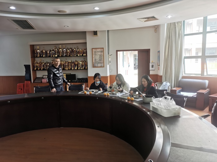 接著,姚成輯校長、劉沛昌主任、郭海偉主任帶領家委代表參觀學生午餐及休息的地方,提出了今后的設想。隨后三位家委代表參與學校飲食監管,與食堂管理人員一起觀看食堂、查倉庫,了解操作有序的烹飪流程,并一起就餐,品嘗學生的飯菜。家委們都感受到學生的飯菜質量安全,有保證,學生能吃得飽,吃得放心。在參觀中,家長們感受到學校在盡心保障學生的飲食安全,確保學生健康成長。看到學校在想盡一切辦法,使用所有能用的功能室,保證盡量多的孩子能夠在中午平躺著安靜睡覺,都非常支持學校的工作,紛紛稱贊道:“這是令人民群眾滿意的學校。”