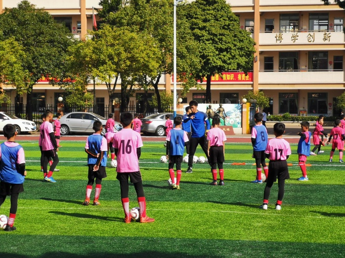 首先,大家觀看了充滿活力的特色足球大課間。隨著集合曲響起,同學們秩序井然地走出教室。伴著輕快的音樂,孩子們踏著自信的步伐,快速整齊地在操場指定位置排隊。昂首挺胸、收腹、目視前方,大課間開始了。與傳統的課間操相比,古三小學足球大課間煥發新光彩,大課間分為四個部分:集體跑——熱身操——足球基本功展示——放松操,古三小學大課間內容豐富、組織形式新穎、練習強度適中,不僅可以對學生緊張的學習起到調劑作用,而且對促進學生身心健康有一定實效。孩子們用心的將每一個動作做到整齊、到位,小小的身體展示著最好的姿態。接著,來訪嘉賓們觀摩了袁嘉浩老師的一節提高短傳能力訓練課。課程采用游戲體驗式教學,多維度地評價,讓學生全方位理解足球的球感,提高短傳能力。來訪嘉賓們也從中感受到了學生們超強的綜合素質能力,他們對古三小學富有特色的校園足球文化和足球特色課程建設給予了充分的肯定,紛紛表示不虛此行。