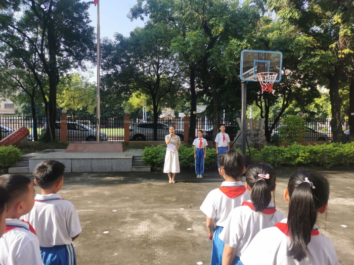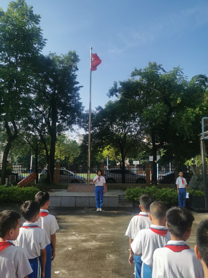 “起來,不愿做奴隸的人們……”活動(dòng)在全體師生高亢雄壯、催人奮進(jìn)的歌聲中拉開序幕,少先隊(duì)員們面向鮮艷的五星紅旗莊嚴(yán)敬禮,目光隨著冉冉升起的國(guó)旗緩緩移動(dòng)……升旗儀式上,少先隊(duì)員代表陳妍宇同學(xué)進(jìn)行了主題為“紅領(lǐng)巾,我心中的永恒的顏色”的國(guó)旗下演講,倡議全體少先隊(duì)員認(rèn)真學(xué)習(xí)、踏實(shí)做人、鍛煉體魄、掌握生活的本領(lǐng),讓紅領(lǐng)巾成為我們心中永恒的顏色。最后,學(xué)校少先隊(duì)輔導(dǎo)員助理梁麗霞老師與隊(duì)員們共同重溫了建隊(duì)日的來歷,回顧了少先隊(duì)組織所走過的歷程,對(duì)少先隊(duì)員們提出了殷切的希望與要求,號(hào)召少先隊(duì)員們時(shí)刻準(zhǔn)備著,為中華民族偉大復(fù)興而努力進(jìn)取。