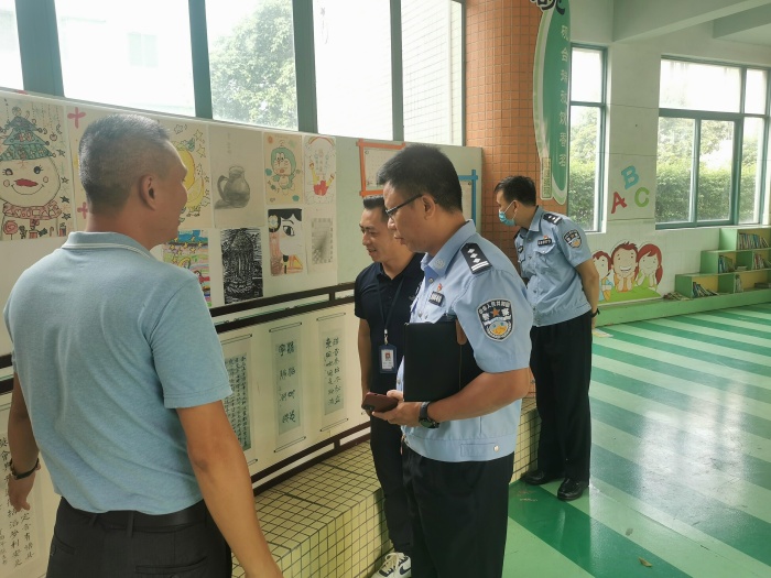 校園安全是學(xué)校工作的重中之重。為加強(qiáng)學(xué)校安全管理,維護(hù)校園安全穩(wěn)定,有效遏制校園安全事故的發(fā)生,確保古三小學(xué)有一個安全、穩(wěn)定、和諧的育人環(huán)境,9月26日上午,鎮(zhèn)黨委委員、公安分局局長潘軍,古鎮(zhèn)派出所所長張文勝,古三村委員廖炳標(biāo)到古三小學(xué)進(jìn)行安全工作專項督導(dǎo)。古三小學(xué)副校長姚成輯帶領(lǐng)全體行政領(lǐng)導(dǎo)陪同檢查。