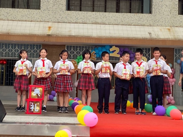 四點半,六年級的畢業典禮在和諧、感恩的氛圍中拉開帷幕。在《少年》歌曲的環復中,老師帶頭,六年級的家長牽著自己孩子的手走過成長之門,并留下影像。然后,全校師生及到場家長一同參與莊重的升旗儀式,大聲合唱《國歌》;兩名優秀畢業生代表作國旗下講話,他們回顧了難忘的六年小學生活,也給了師弟師妹們一些衷心的建議。隨后,唐慧玉副校長作畢業致辭,祝賀孩子們順利畢業,希望孩子們帶著自己的夢想,向未來繼續出發。緊接著,唐慧玉校長代表古一小學向畢業生捐贈禮物——書籍《優秀小學生要知道的50個禮儀》。隨后家長代表講話,祝愿孩子們快樂成長。最后,學生代表向校長及畢業班、退休老師贈送鮮花,以及西藏林芝向工布江達鄉小學捐贈“友誼燈”,傳遞光芒,點亮伙伴,增進情誼。