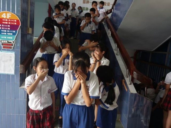 學生們在班主任老師的引導下,用手或毛巾捂住口鼻,緊張、有序、快速地撤離教學樓,按預定的疏散路線撤離到安全位置并迅速集合,在較短的時間內疏散到位。整場演習活動緊張、有序,達到了預計的消防演練效果。