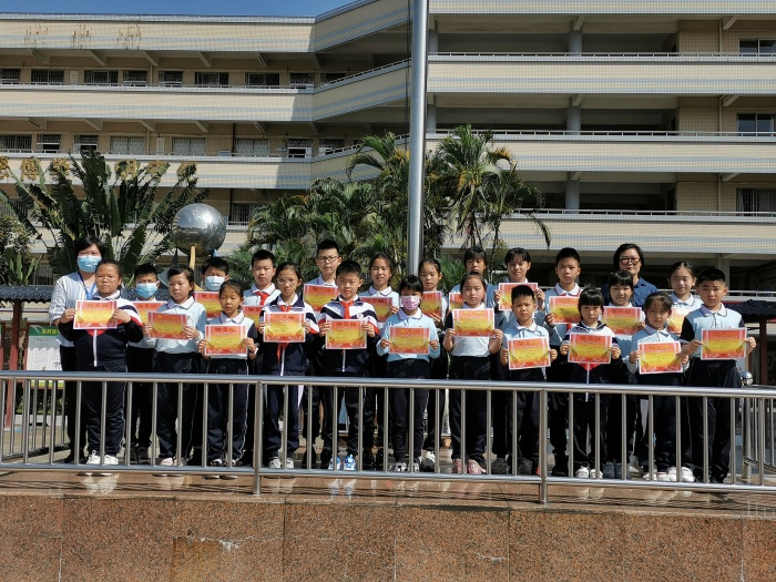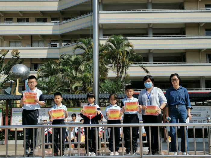 鄧主任進行活動總結后,各班學生代表接過副校長麥彩英手中的獎狀,此時,校園里響起熱烈的掌聲,同學們都為獲獎的班級加油、鼓勁。