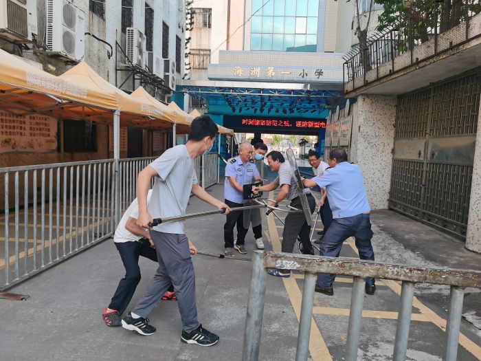 會議上,鄧主任主要對保安員的假期值班工作和個人疫情防護要求作出明確要求,為確保校園一方安全,保安員在執(zhí)勤期間,要在崗、在狀態(tài),要注意交班時間的銜接,定期巡視,確保校園財產(chǎn)不受損失。同時,目前防疫工作仍是校園安保工作的重中之重,要嚴格核查來訪人員粵康碼、行程卡的同時,保安員也要根據(jù)上級要求,做好個人防護。接著,在鄧主任的組織下,學校保安員一起簽署了《疫情承諾書》,承諾做好個人防護。隨后,潘校長對安保工作作了明確的指示,指出安保工作是學校安全的重要保障之一,希望各位保安員要明確責任意識,為建設平安、和諧校園不遺余力。最后,鄧主任跟大家傳達了昨天在鎮(zhèn)安全會議上有關最小應急單元演練的要求,并組織安保人員與學校最小應急單元的老師一起進行一次最小應急單元演練。