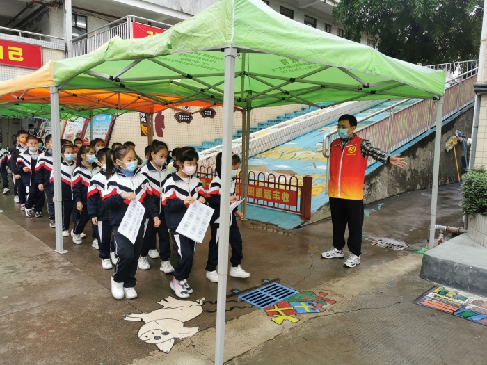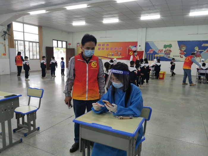 為了讓核酸檢測工作順利、有序、安全地進行,黨支部書記潘啟欽、學校副校長麥彩英、副主任賴名佩等學校行政先制定詳細方案,并反復研討、精密部署,最后對全體行政和教師進行詳細分工,讓檢測的師生員工分時段、分年級錯峰檢測,確保檢測工作萬無一失。