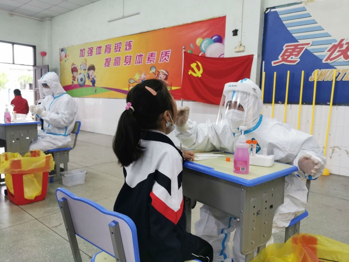 全校師生員工和醫護人員密切配合,整個檢測過程有條不紊、井然有序。歷經1個多小時的努力,1100多份的核酸采樣工作,在有序高效的情況下順利完成!