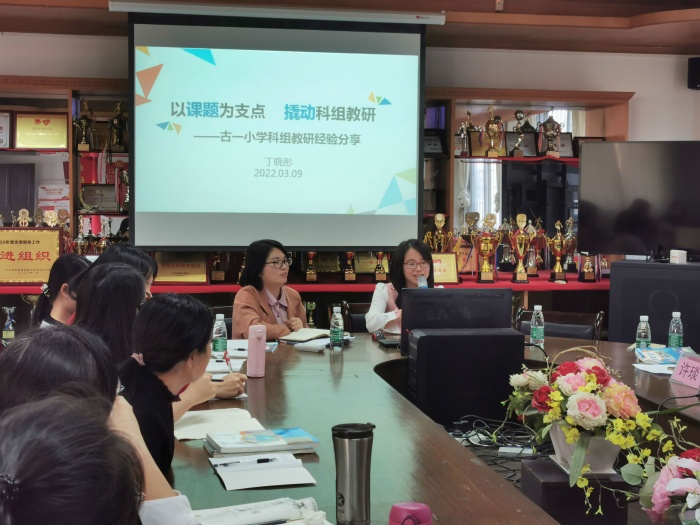 第四環節是古一小學丁曉彤老師對科組教研活動開展的經驗報告。丁老師將“以課題為支點,撬動科組教研”的寶貴經驗毫無保留地分享給在座的老師。介紹了他們從小課題到大課題,從學校走向省市,利用研究課題的契機,轉變教學理念,學習新型教學工具,提升教師們的業務能力。