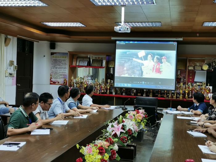 麥彩英副校長主持本次學習交流會。學習交流會的第一部分,全體教師一起觀看了在古鎮鎮教師節表彰大會上播放的關于海洲第一小學潘啟欽校長的視頻——《辦一所有溫度、有故事的學校——記古鎮海洲第一小學 潘啟欽校長》。