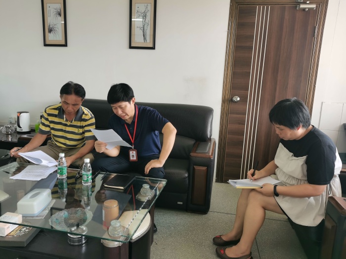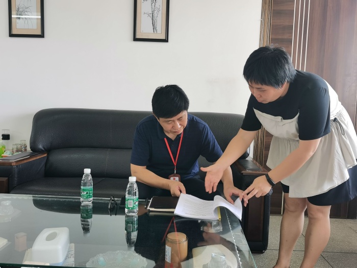 敖萬軍督學聽取了潘啟欽校長開學以來的工作匯報后,對學?!拔屙椆芾怼惫ぷ鞯穆鋵嵡闆r進行了全面細致的檢查。他認為學校高度重視,宣傳及時,管理制度整理完整,工作扎實。敖督學還圍繞關于中小學生手機管理、睡眠管理、讀物管理、作業管理及體質管理工作給出了詳細的指導意見,如要讓全體教師熟知五項管理的具體內容,依法治教;在校內設公用電話,方便學生有需要時聯系家長;再次提醒老師區別線上教學時的工作方式,不能用手機布置作業和用手機完成作業;課外讀物要進行一次全面的清查,不能有負面清單內容的書籍存在;學生的體質健康要注意每學期兩次的視力檢測等。