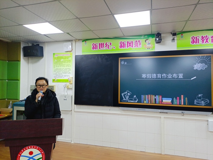 寒假是同學們德智體美勞全面發展的好時機,雖然寒假不用上學,但是同學們也不能浪費自我提升的機會,所以第二個環節由鄧苑甜主任進行寒假德育作業的布置,讓同學們在寒假中有方法地提升自己。鄧主任從生活常識、安全教育、健康心態、閱讀方式、時間管理、勞動實踐六個角度對同學們提出作業要求,并且貼心地給予行動指引,讓每一位同學都能清晰自己需要完成的任務。