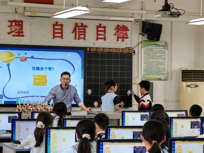 在最后總結環節,古鎮鎮教育和體育事務中心的陳和添老師首先肯定了兩位老師的認真備課,在教學過程中注重對學生信息素養的培養,教學環節環環相扣,同時對信息教研組成員提出幾點期許:一是要扎實信息科技學科教學的基本功;二是要靈活運用多種教學模式,教師應當成為智慧課堂的建構者而非傳授者;三是要在教學過程中設計任務群,以此驅動學生信息素養的形成。
