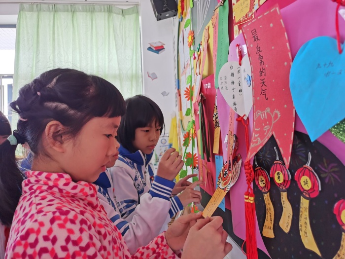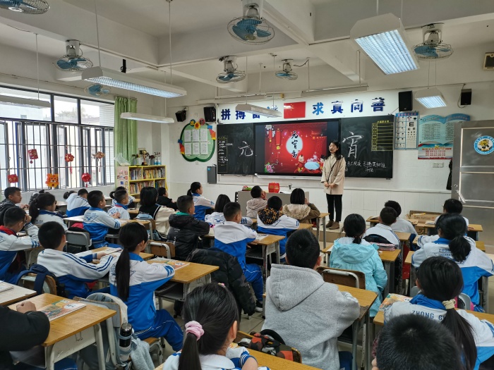 四(7)班開展了“歡樂話元宵”活動(dòng),在精心布置的課室里同學(xué)們一起吟誦元宵古詩詞、唱元宵歌曲、猜燈謎,好不熱鬧,整個(gè)班級(jí)充滿了濃濃的傳統(tǒng)文化氛圍。