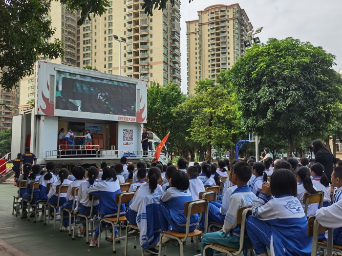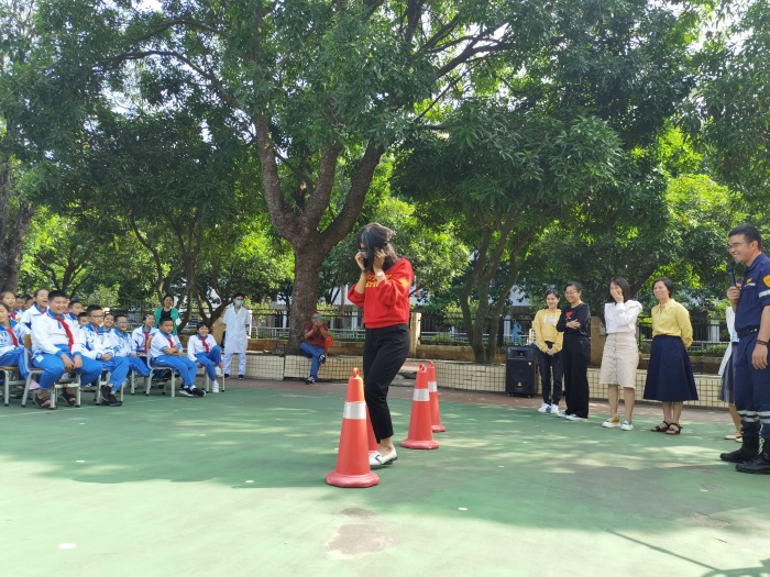 此次活動內容豐富,包含了地震自救知識、火災逃生知識、防觸電知識以及酒駕危害。活動以學生體驗、實踐為主:地震自救知識環節,由市應急辦提供的宣傳大篷車播放地震視頻資料,營造了緊張嚴肅的氣氛,被邀請的同學們坐在大篷車創設的情景“8樓的家”里,劇烈搖晃,頭暈目眩,真實性極高的情景演練讓學生切身感受到地震的巨大危險性,讓他們在實踐中明白,地震中要協作配合,關好水、電、燃氣,打開大門,躲在堅固的安全三角區;火災逃生知識環節、主講員也是先讓同學們在大篷車創設的火災情景中作出本能的反應,側重提醒同學們在濕毛巾捂住口鼻時要將毛巾折疊4次,以便有效過濾有害物質,指導學生正確使用防毒面罩,特別強調演練逃生時避免踩踏事故的發生;防觸電知識環節,則由同學們圍成一圈,一人手握安全電伏的電源,讓同學感受觸電的痛苦,從而掌握人導電的常識,順其自然地讓學生記住了遇到觸電時首先要安全地切斷電源,而不是盲目施救這個關鍵知識;酒駕危害環節,則由老師們戴上暈眩眼鏡過雪糕筒,當間距很遠的雪糕筒都被一一撞倒后,學生明白了醉酒狀態下人的行為是不可控的,酒駕是一種危害他人,傷害自己的行為。